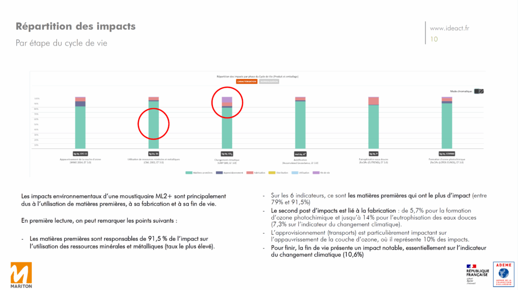 Extrait d’une ACV pour une moustiquaire de la société MARITON _ Répartition des impacts